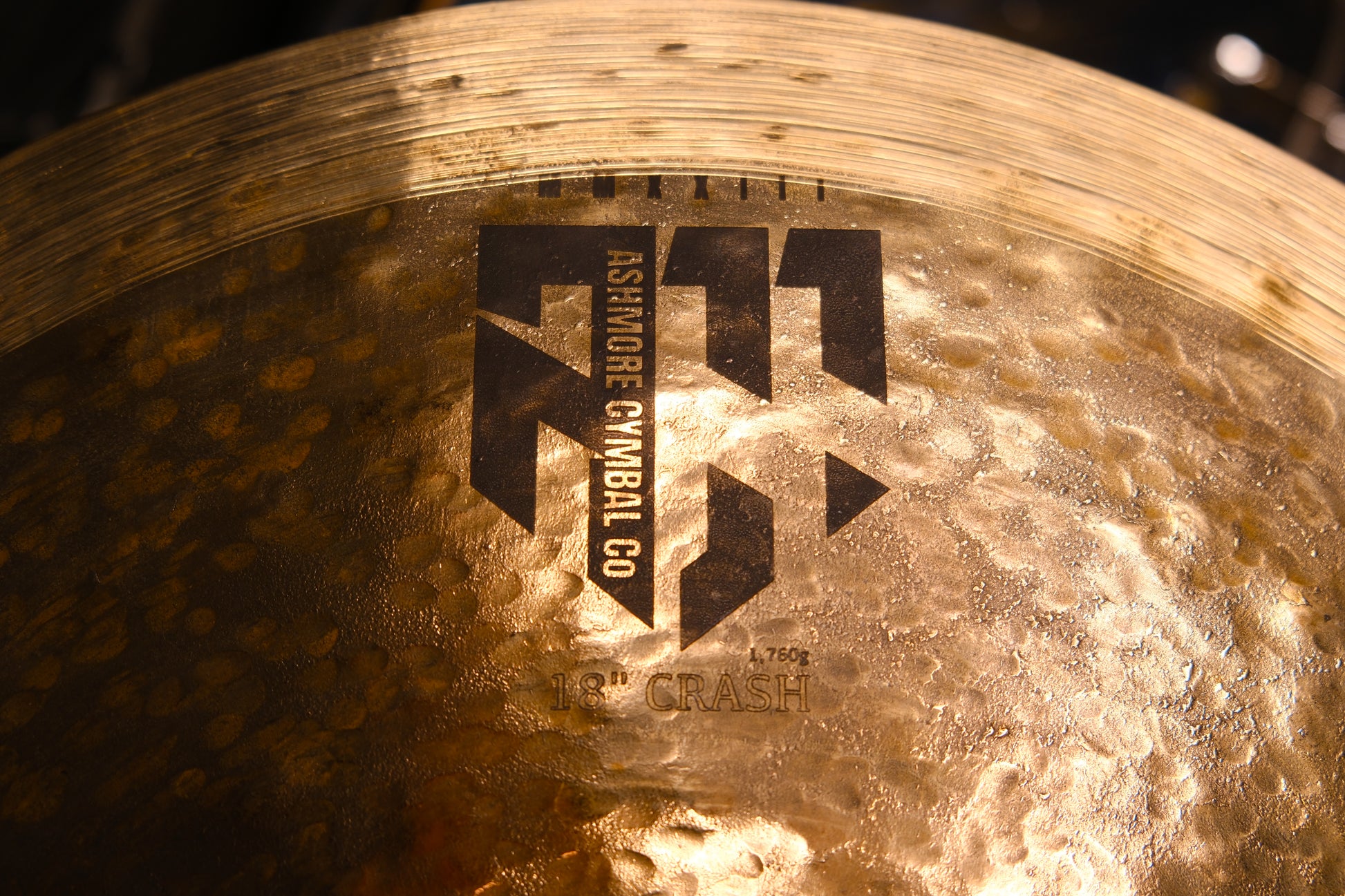1,760g - Handmade 18" Crash in Northampton, UK boasting a bright crash with dark undertones, using the finest B20 Turkish bronze hand hammered by artisan/independent cymbalsmith Ryan Ashmore.